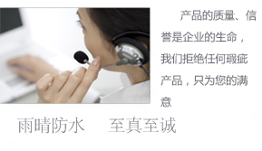 產品的質量、信譽是企業的生命,一方面我們雨晴全體員工以“誠信”為基石,在產品服務上拒絕任何瑕疵,以先進的技術在競爭中取勝,以真誠待人的態(tài)度,熟練的業務技能和規(guī)范的服務流程......[詳情]